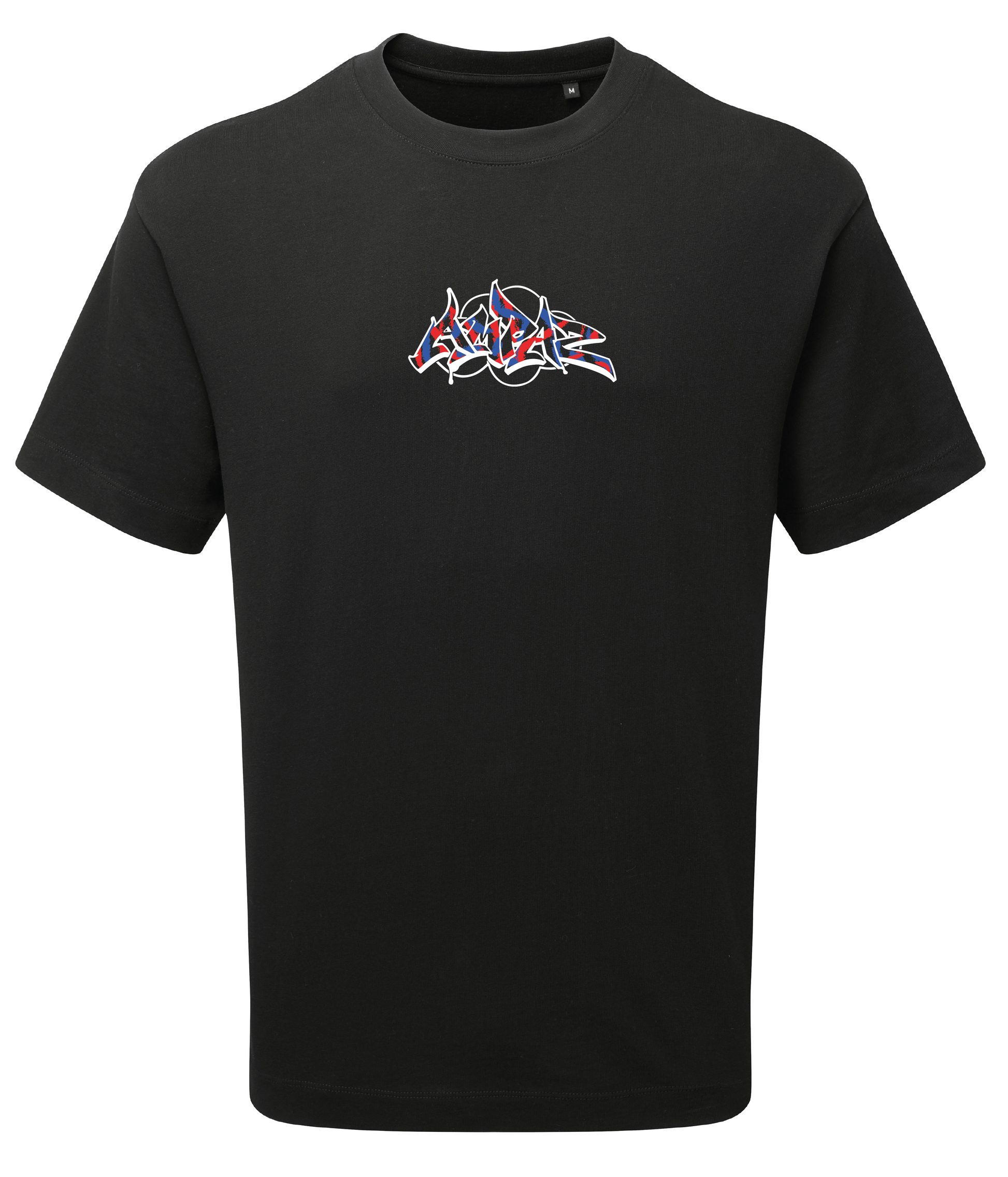 Ce modèle unisexe est proposé en blanc et en noir avec un design centré à l'avant et un à l'arrière.